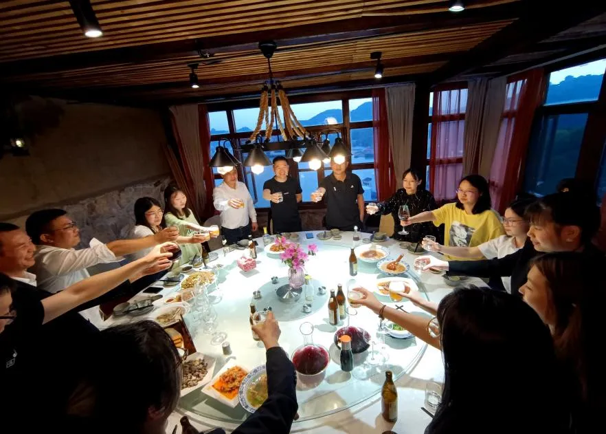 Upon arrival at the Haishan Stone House in Wenling, the team held the first-quarter marketing meeting for 2022. The session began with an opening address by General Manager Shao. Following that, each marketing team member reported on their respective areas of responsibility and discussed strategic plans for the second quarter. Each department pledged to go all out, face difficulties head-on, and resolutely achieve their targets.